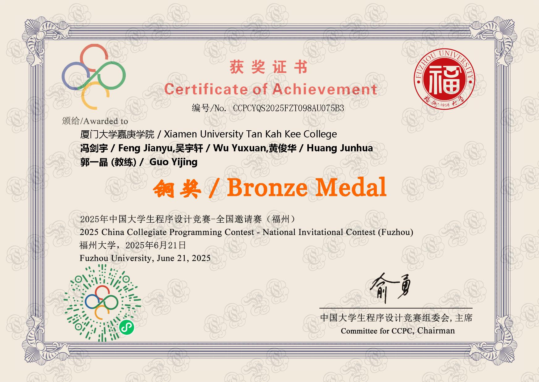 2025年 - 福州邀请赛 铜奖🥉