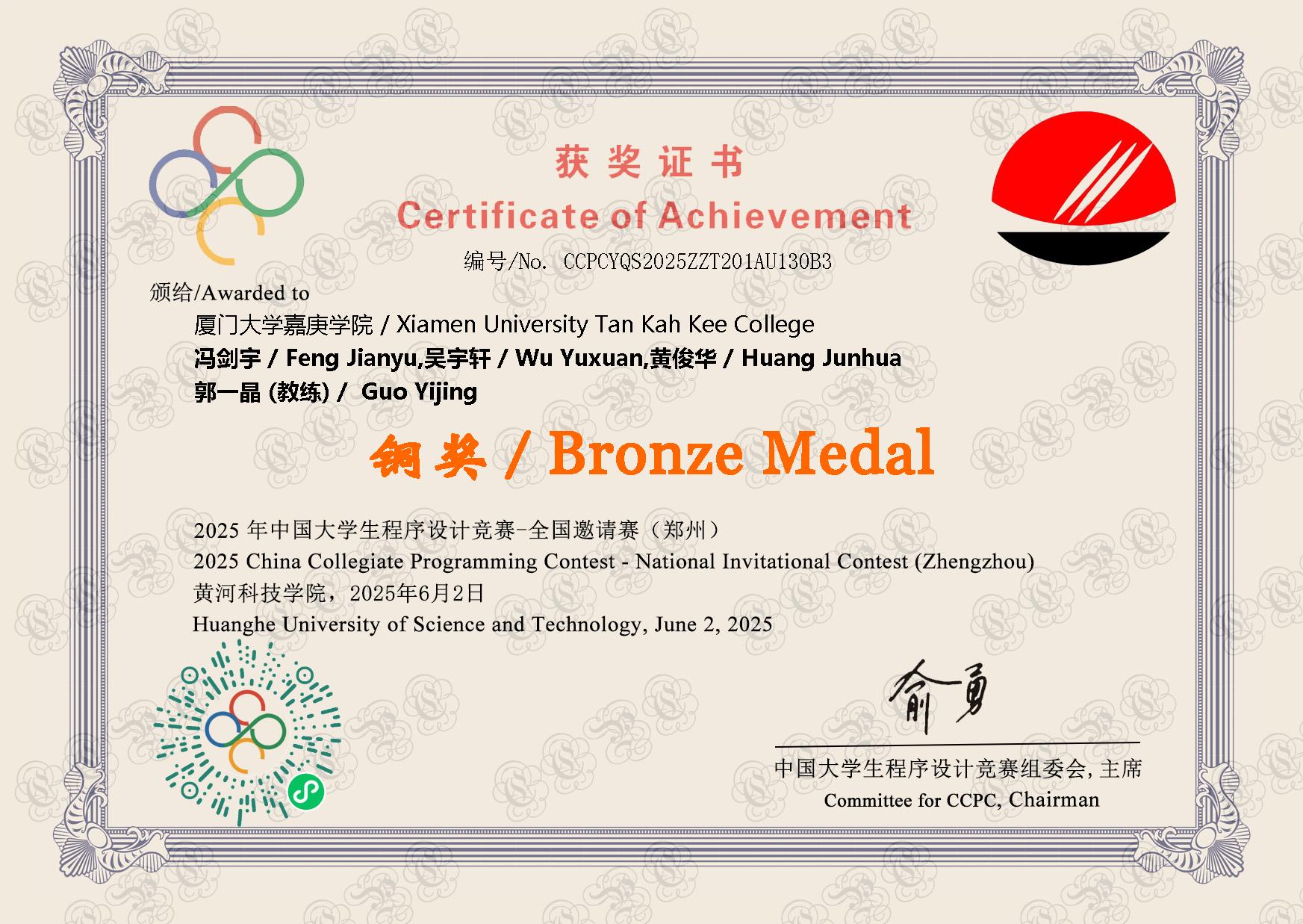 2025年 - 郑州邀请赛 铜奖🥉